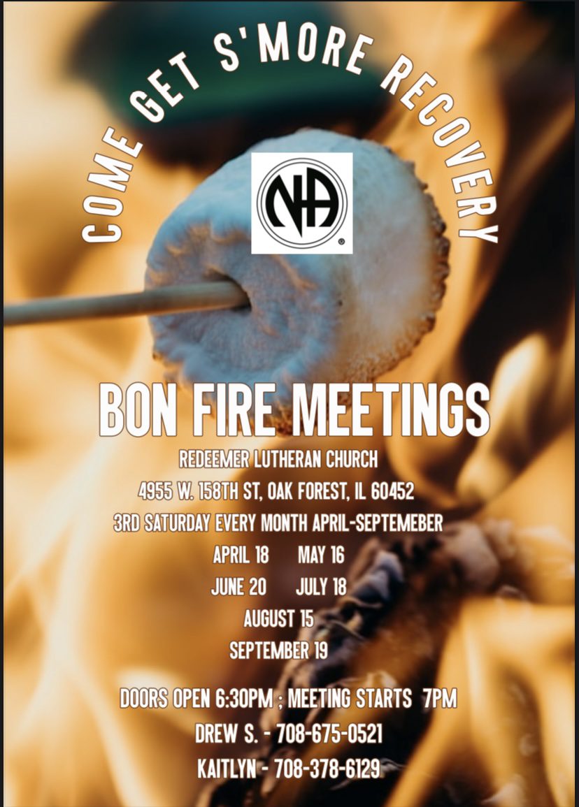 Meetings outdoors around a bonfire, followed by fellowship and s’mores