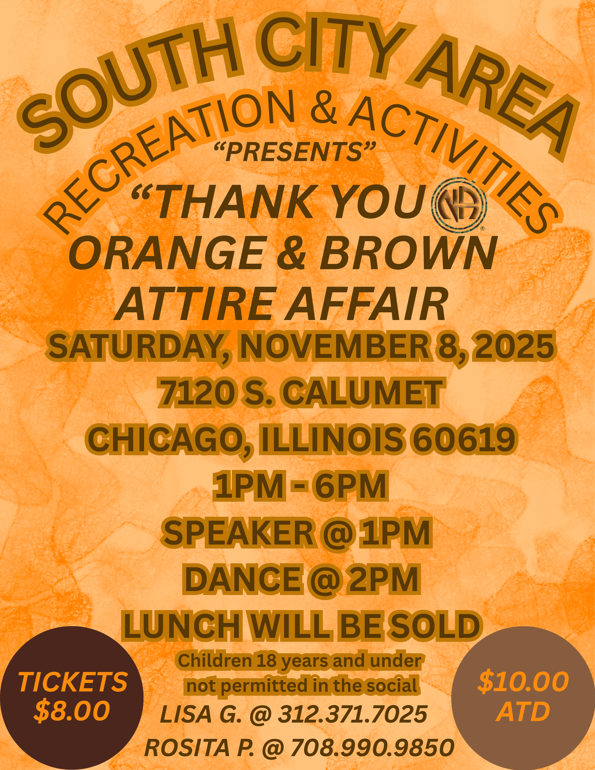 SCA ORANGE AND BROWN ATTIRE AFFAIR