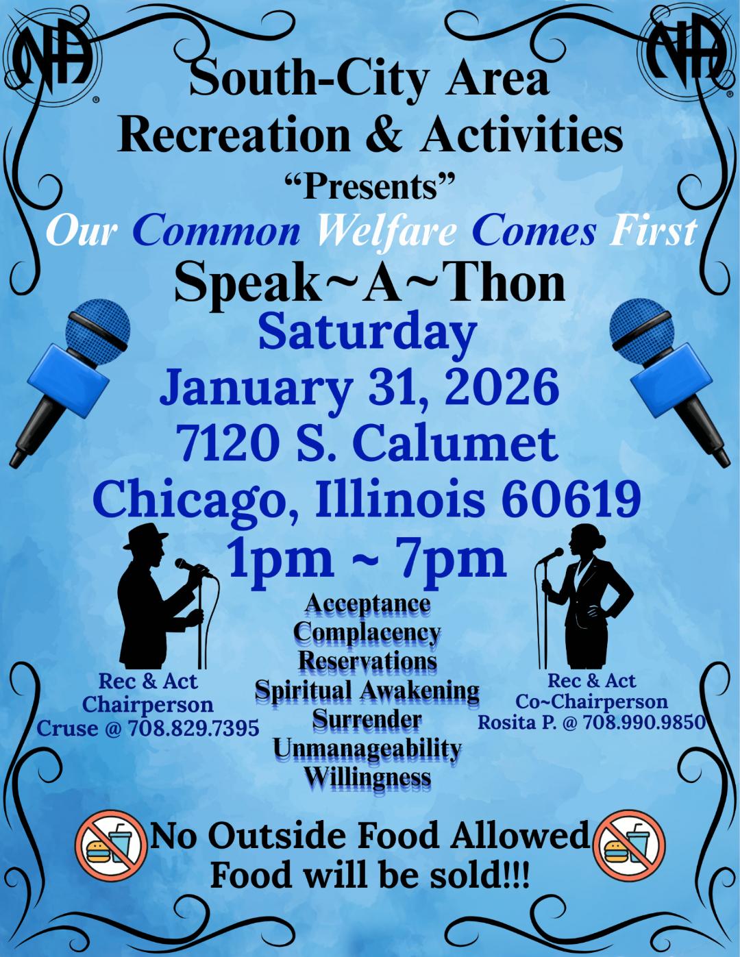 SOUTH CITY AREA RECREATION & ACTIVITIES presents OUR COMMON WELFARE COMES FIRST SPEAK-A-THON