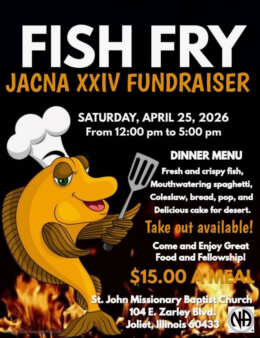 Apr 25 JACNA XXIV – FISH FRY 1:00 pm - 5:00 pm St. John 104 E Zarley Blvd, Joliet Event Details Get Directions