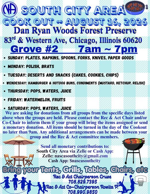 Aug 16 SCA ANNUAL COOKOUT 7:00 am - 7:00 pm Dan Ryan Woods 8300 S Western Grove 2, Chicago Event Details Get Directions